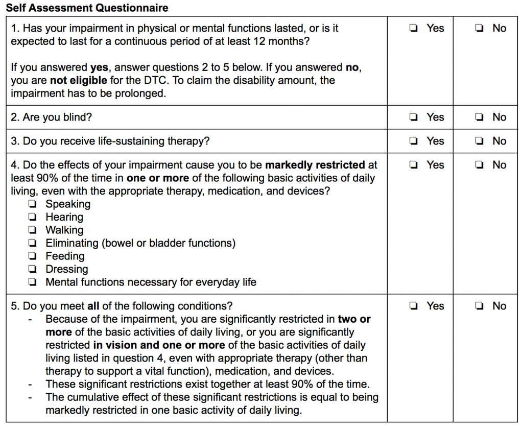 Revenue Canada Disability Tax Credit Form 2018